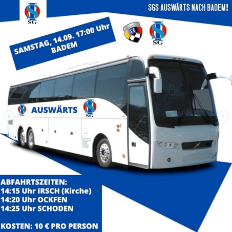 Zum Auswärtsspiel nach Badem fahren wir am Samstag, 14.09.2019 wieder mit dem Bus. Spielbeginn ist um 17:00 Uhr auf dem Rasen Platz in Badem.